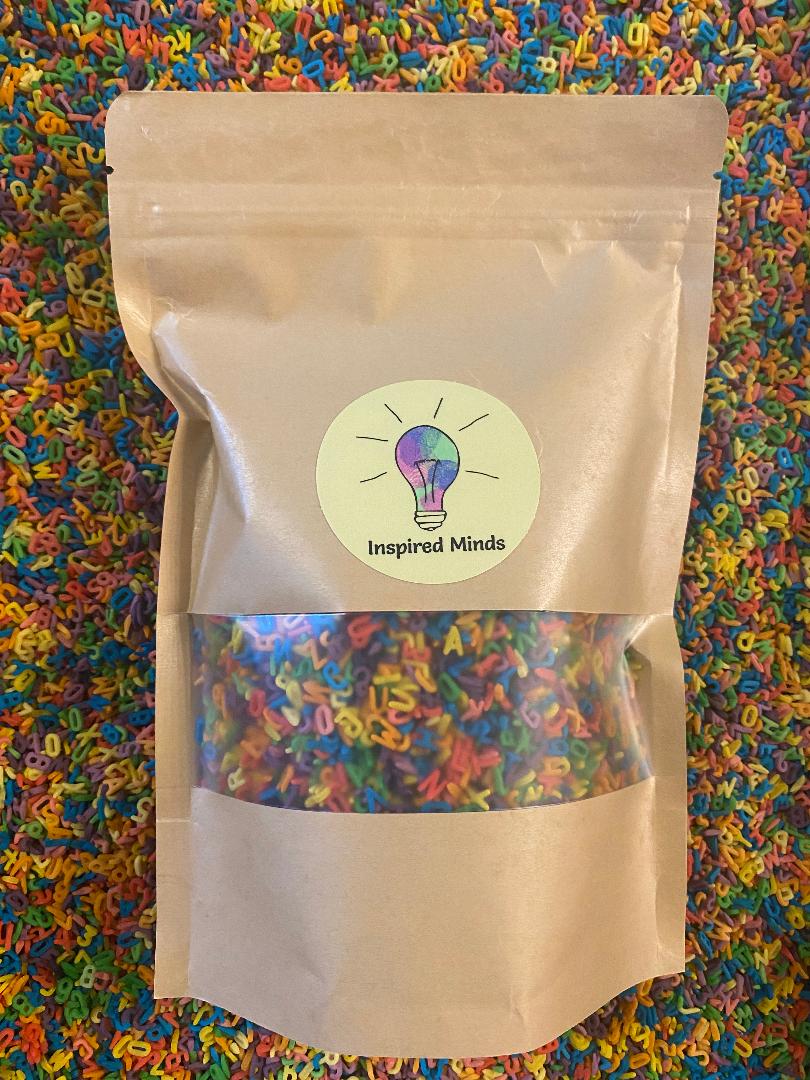 Rainbow alphabet and number pasta is the perfect base for sensory bins and bottles. There are so many ways to play and explore using this academic sensory base. It is the perfect addition to our sensory kits and bottles. It's also great on its own.
