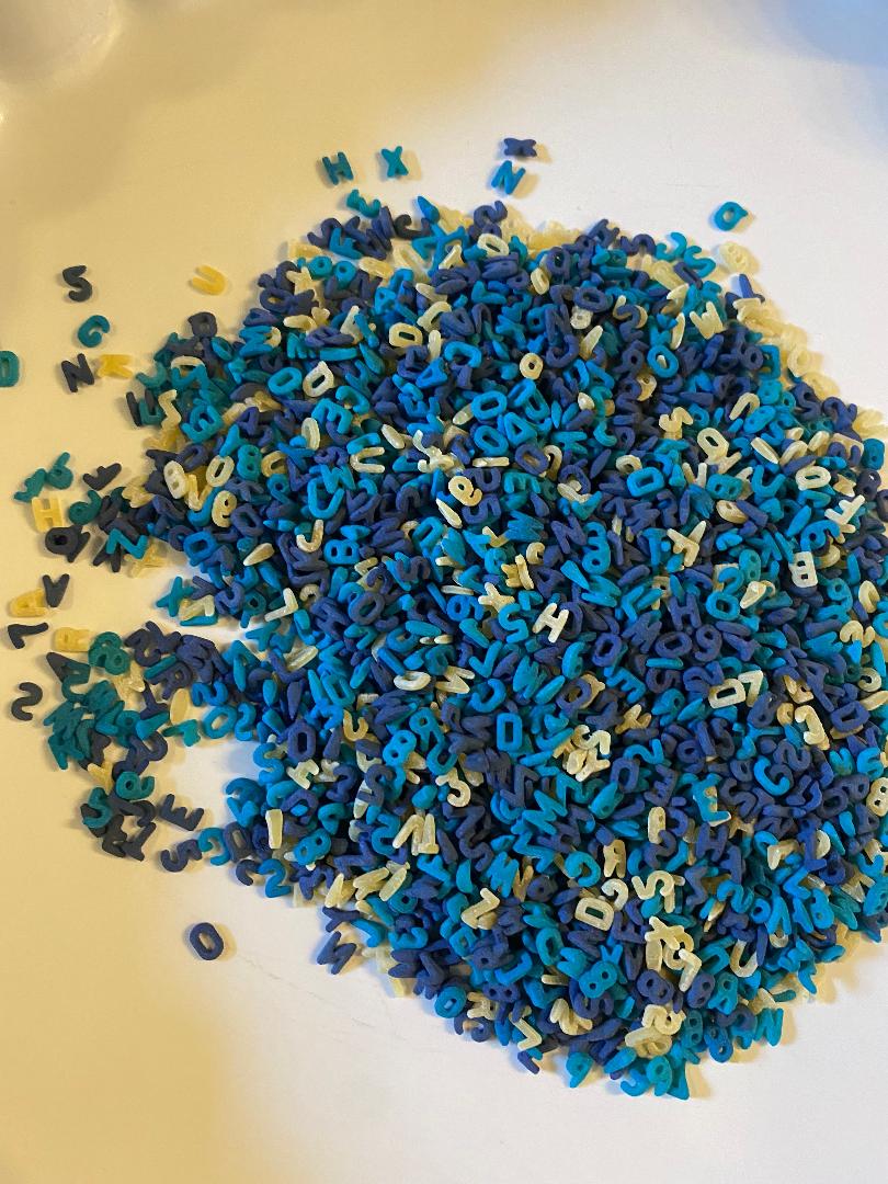 Alphabet and number pasta is the perfect base for sensory bins and bottles. There are so many ways to play and explore using this academic sensory base. It is the perfect addition to our sensory kits and bottles. It's also great on its own.